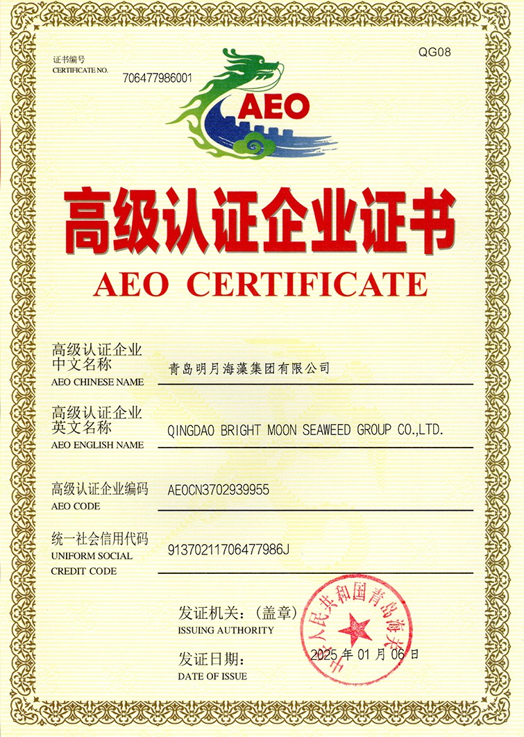 1月3日,明月海藻集團成功通過海關高級認證企業(AEO)