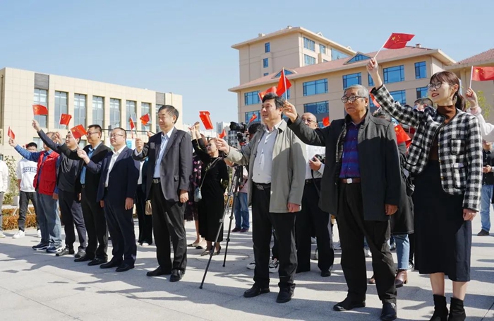 典禮開始前,明月海藻集團(tuán)的員工代表和來(lái)自新區(qū)青少年活動(dòng)中心的孩子們,以一曲《我和我的祖國(guó)》快閃表演營(yíng)造了熱烈的氛圍。現(xiàn)場(chǎng)紅歌嘹亮,余音繞梁,表演者們以飽滿深情的紅歌演唱表達(dá)對(duì)祖國(guó)的愛,祝福祖國(guó)繁榮富強(qiáng)。