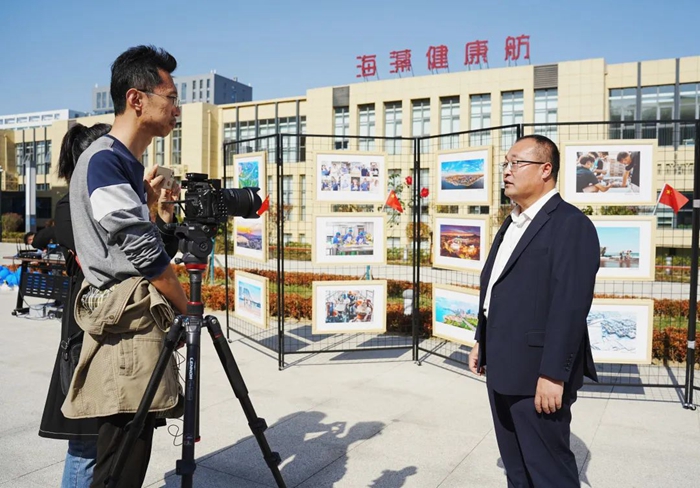 青島明月海藻集團(tuán)總裁劉兆志在現(xiàn)場(chǎng)接受采訪