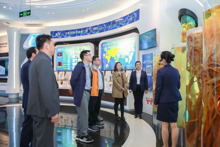 會前,雙方領導及黨員代表一同參觀了中國海藻科技館,深入了解明月海藻集團通過轉型升級在科技創新、產品研發、多元化發展方面取得的成果,深切感受到明月新質生產力的強大。