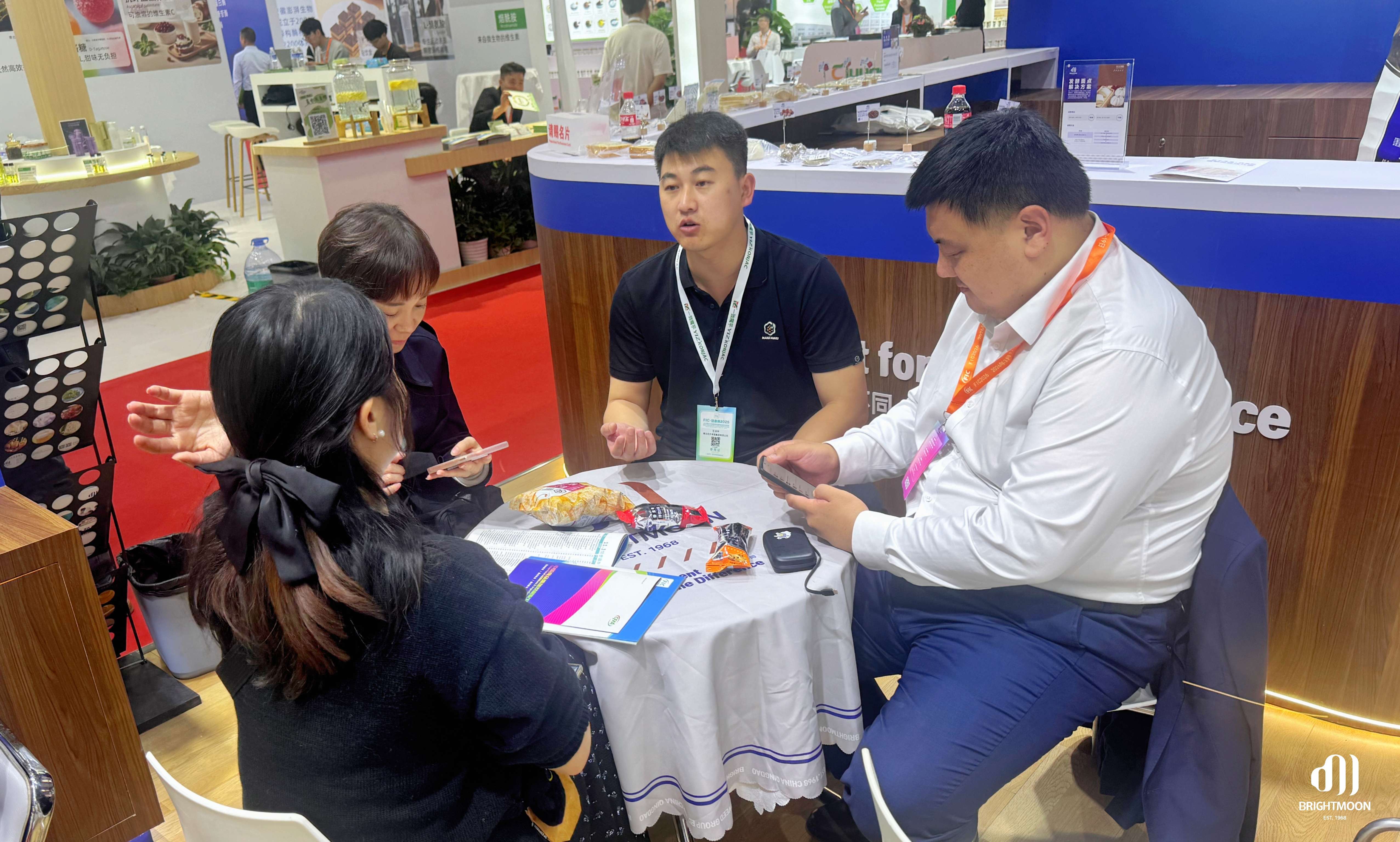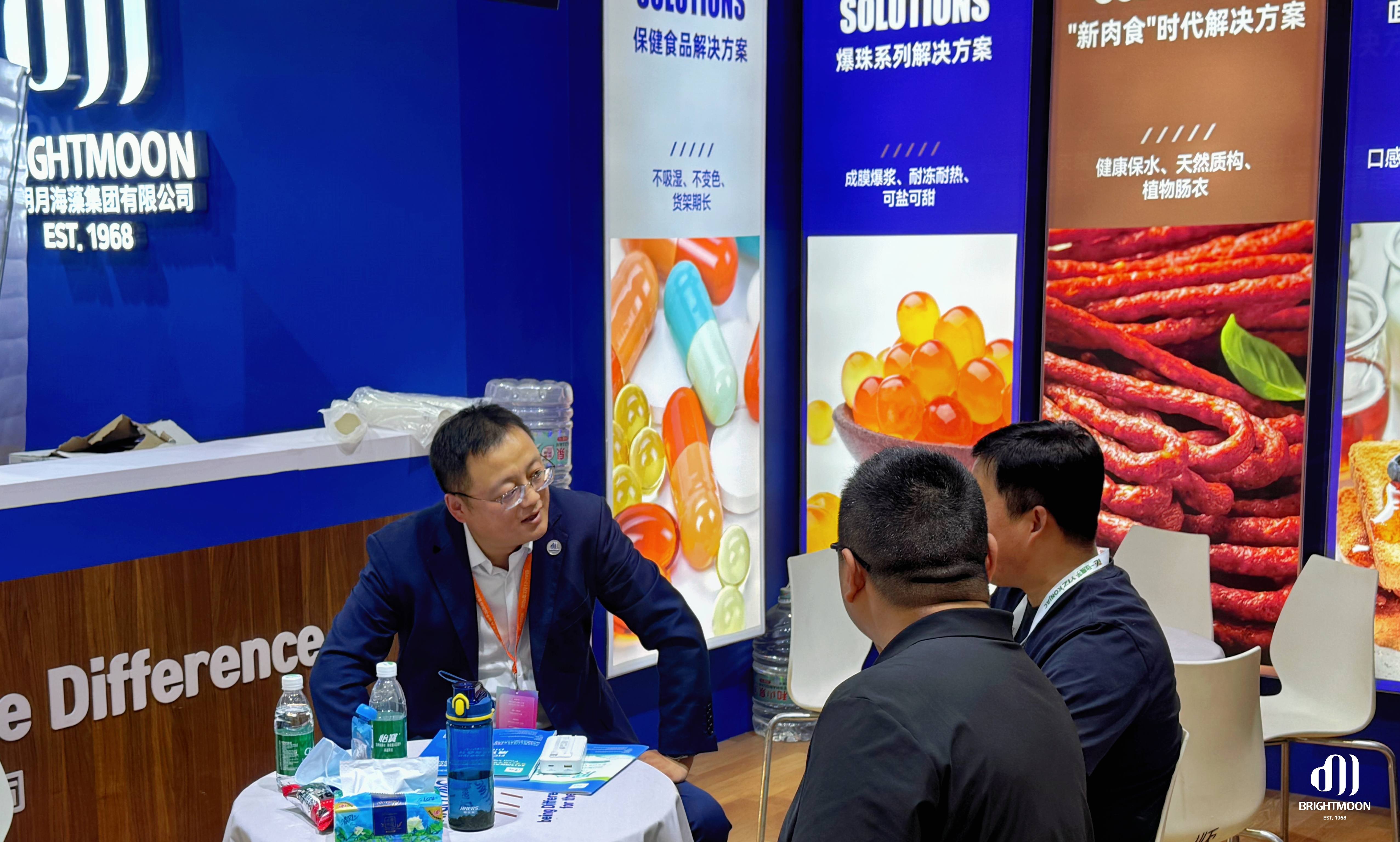 展會期間,明月展位始終熱度不減。專業團隊以產品展示、技術交流和場景化示范,向現場觀眾集中呈現“海藻功能原料×食品創新”的前沿趨勢,吸引了大量行業伙伴駐足探討,共同尋找下一代食品創新方向。